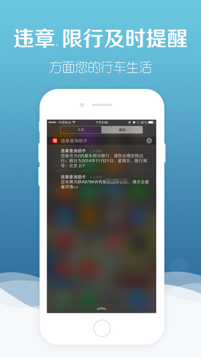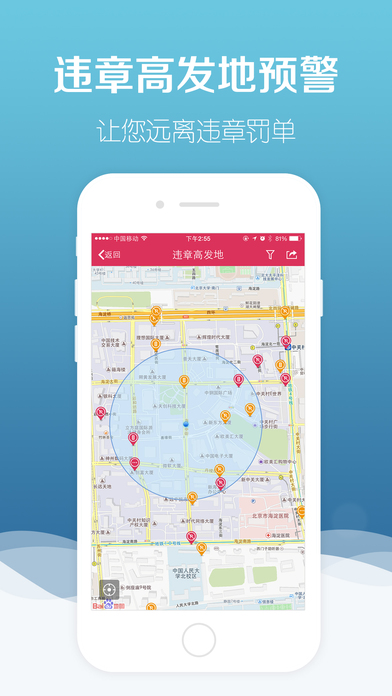 新违章、限行第一时间提醒,违章高发地提前预警,跟罚单说byebye。