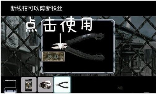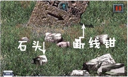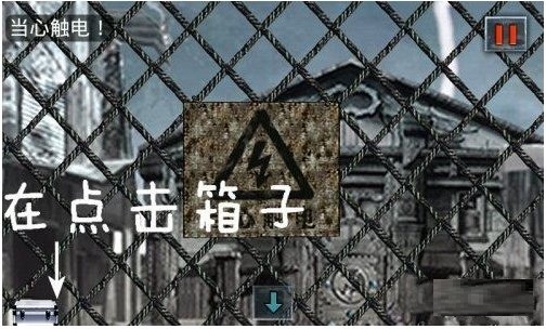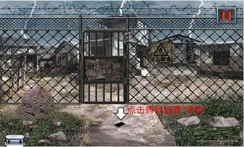 得到石头和断线钳后,我们回到刚才的铁门场景,并点击电网上的一个牌子。