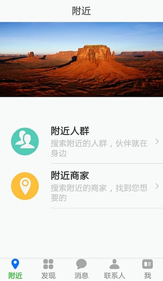 不用加好友就可以直接搜索显示出附近各类实体店和网店商家的商品图片和价格以及优惠活动情况,地图位置,联系号码等等。分类为:美食类(各类餐馆、外卖),购物类(附近各类商家),休闲类(各类休闲娱乐),宾馆类,生活服务类(附近各种服务行业),出租车,生意和工作,批发、求购、招商、招聘、求职、出租、合作、转让,代办,附近各类二手货物的交易等等。