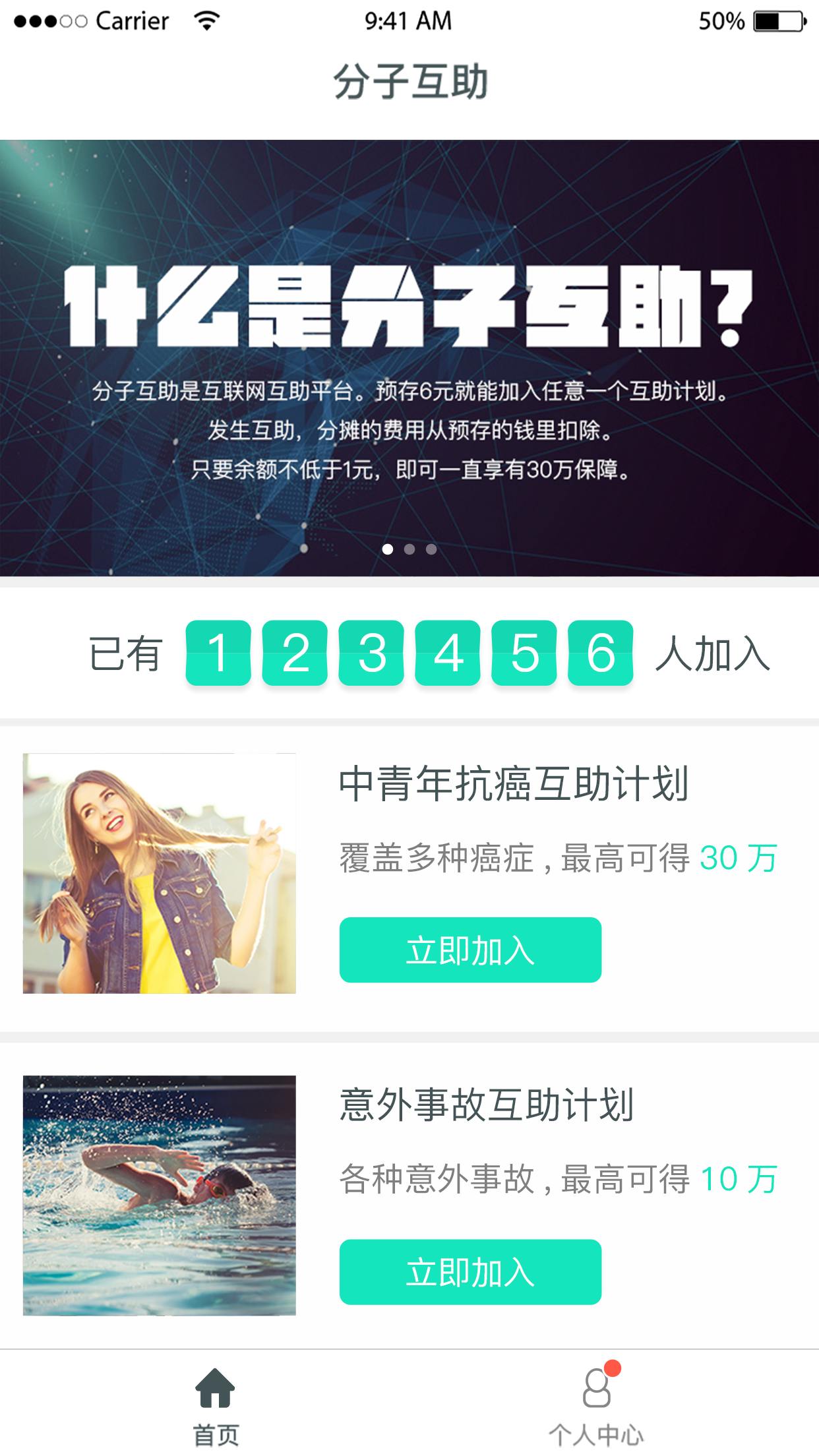 (1)低投入,高保障*分子互助将大量的用户组织起来,预存6元,就能加入任意互助计划,多达可享有30万元的保障。