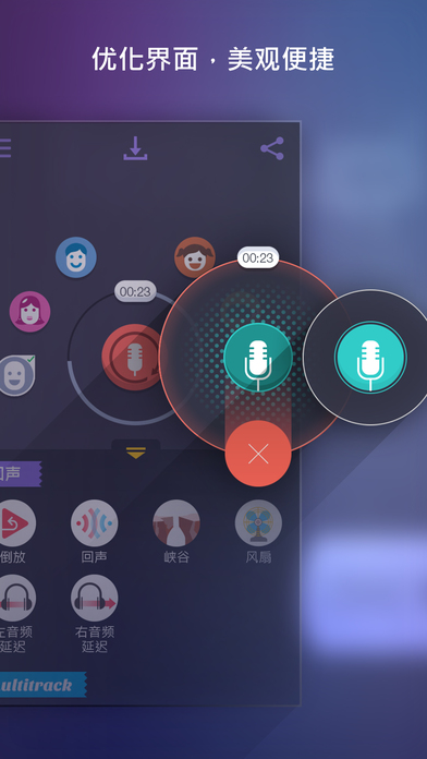变声器是你最好的选择:有各种各样的声效,可以让你以全新的方式来表达自己。你可以变成其他声音,或者加一些背景音效。说白了,就是你可以变出任何想要的声音。你的想象是唯一的边界!优化的界面设计让你一键就可完成录音。