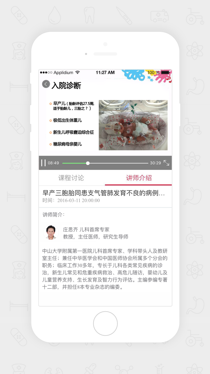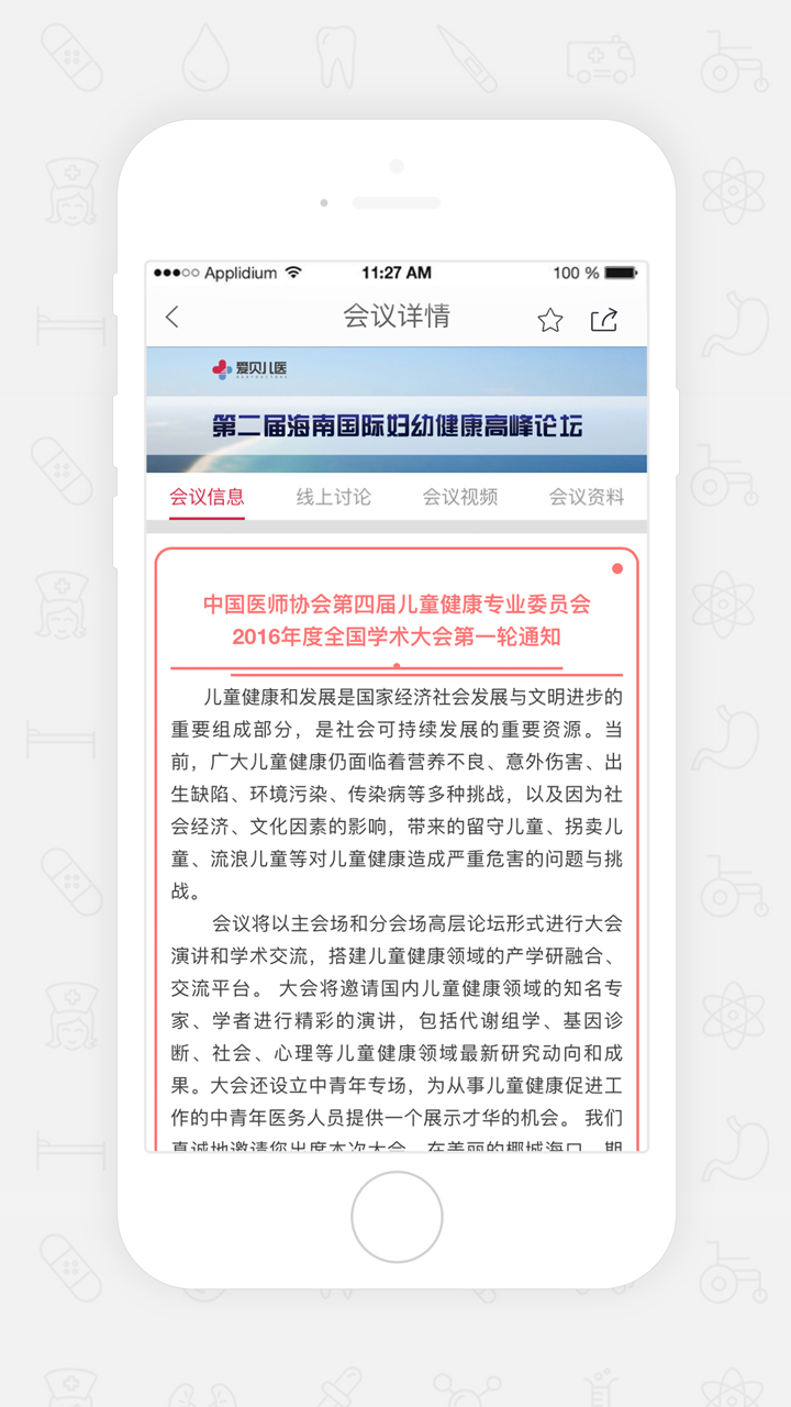 爱会议——线下整合学术会议和教学视频、会展活动的专家讲座课件、现场视频、爱贝儿医平台上播放并增加问答环节,让儿科医生们在学习中提高,在互动中成长。