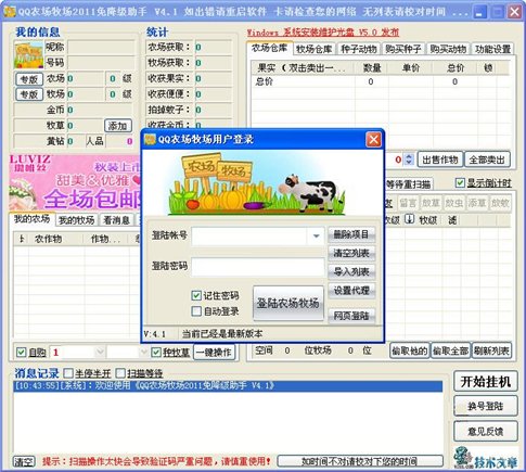 QQ农场牧场免降级助手是一款qq农场牧场外挂辅助程序。QQ农场牧场免降级助手只帮玩家进行操作,不修改游戏数据。QQ农场牧场是一款QQ开发的空间小游戏,非常的好玩。但是生活在快节奏下得我们根本没时间守候在电脑前等朋友的宝贝成熟,用qq农场牧场外挂又怕被降级封号,怎么办才能两全其美呢?起点为您推荐QQ农场牧场免降级助手2012最新版,让您想偷就偷,无后顾之忧。