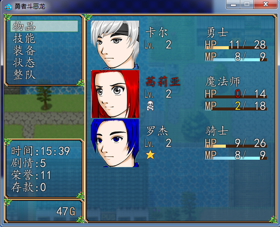 游戏及为人性化,死亡后不结束游戏,肚子再饿也饿不死人,冒险再累也不会躺下。游戏有白昼切换,如果你走着走着太阳下山天黑、村子的人睡觉了,这个时候你就得看看时间了。人物预计在8个,目前第一章就达到5人,出战4人但战斗中可以换人,关于马车嘛!自己慢慢吐槽好了。【游戏攻略】