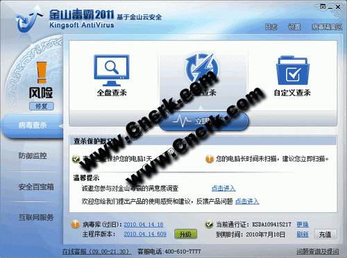 金山毒霸 2011 SP1 专业版 简体中文官方安装版 首款真正的云查杀杀毒软件,只占19zmb内存,为电脑减负!采用蓝芯II云引擎,100%可信与病毒文件识别率,互联网新文件2分钟鉴定;实时防毒,低资源占用高效保护,亦可防御未知新病毒;全新界面,清爽皮肤,全面支持win7新特性;下载、聊天、u盘全面安全保护,免打扰模式,自动调节资源占用