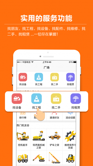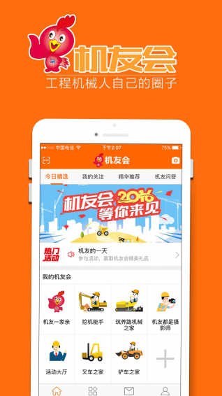 机友会是中国工程机械行业电子商务领先网站:中国路面机械网、工程机械电商网为工程机械行业用户量身打造的一款好玩、实用、有活力的移动端社区,是广大机友们提升工作技能、抒发心情的交流社区。机友们可根据自己所在地区,或兴趣、喜欢等来建立属于自己的圈子。依托中国路面机械网强大行业资源,机友会里还可以找朋友、找工程、找设备、找配件、找维修、找二手、找租赁,更有购机折扣、工业游、参展、机友聚会、技能培训、有奖互动等机友福利等你一起分享。【更新日志】