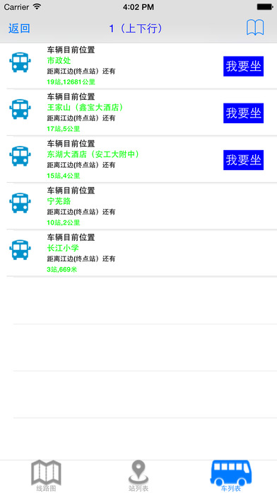 打开软件,点击右上角“定位”,点击“手动选择”,在弹出的下拉列表中选择“马鞍山市”,点击“返回”,再点击“公交车”图标,进入查询界面。【公交信息查询】