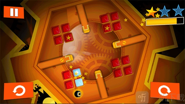 1、玩家必须持续转动齿轮,使小球触碰到齿轮上的每一个方块,这样才能完成通关任务。