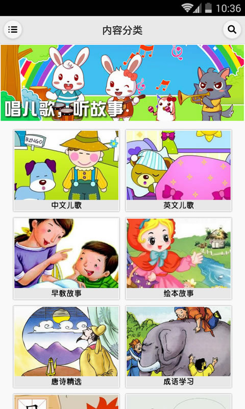 针对0-10岁儿童的早教儿歌软件,精选了儿歌、故事、学习多方面的动画,目前已提供上千首早教动画。内容分为:中文儿歌、英文儿歌、韩语儿歌;成语故事、童话故事、儿童识字、唐诗宋词几大类,涵盖了儿童早期教育的各方面知识,非常适合与您的宝宝同步学习成长。本软件内容不断持续更新,欢迎随时关注收看。软件所含动画都为在线流媒体播放,不占用您的手机空间。观看动画必须联网,建议您在有WIFI的环境中使用。