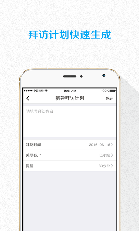 1、简单快捷制定拜访计划,有效管理陌生客户拜访;2、开放式信息录入,随时添加碎片化的客户信息;