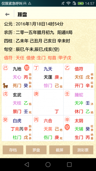 奇门遁甲是古老的术数,是三式之一。早期主要用于军事布阵排兵,后应用到各方各面。奇门遁甲入门,给你详解这门古老术数的奥妙所在。本软件主要提供给用户奇门遁甲的排盘和详细的九宫分析,其中对九宫的分析摒弃之前的死板的格局之说,加入了成熟的判断和象意。