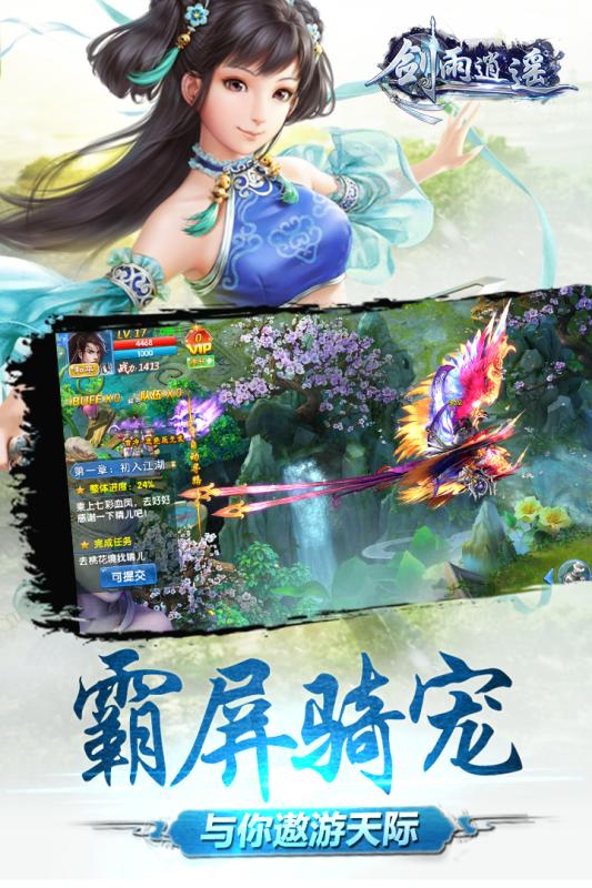 2016年修仙诚意之作《剑雨逍遥》震撼上线!收集控、外观控、挂机党、平民玩家、战斗达人的修仙福音!一个都不能少!收集控:萌宠免费收集,人鱼、狐媚、凤凰各种萌宠每天都送!挂机党:休闲挂机,神装遍地,时间就是金钱!外观控:云雾缭绕,秘境探访仙迹。酷炫羽翼飞天坐骑回头率爆表!战斗达人:精英BOSS、竞技场闯关、攀登通天塔,总有你想征服的关卡! 平民玩家:人人免费VIP,丰富礼包疯狂来送,全新装备,玩法多样,快来试试吧!进入游戏之后,跟着主线任务一直做,中间有一些功能引导和系统介绍,在领取了等级礼包和登录奖励之后,可以用女娲石兑换勾玉,在前期,勾玉的性价比是最高的。由于前期的等级提升比较快,所以在升级之余不要忘记了升级技能。