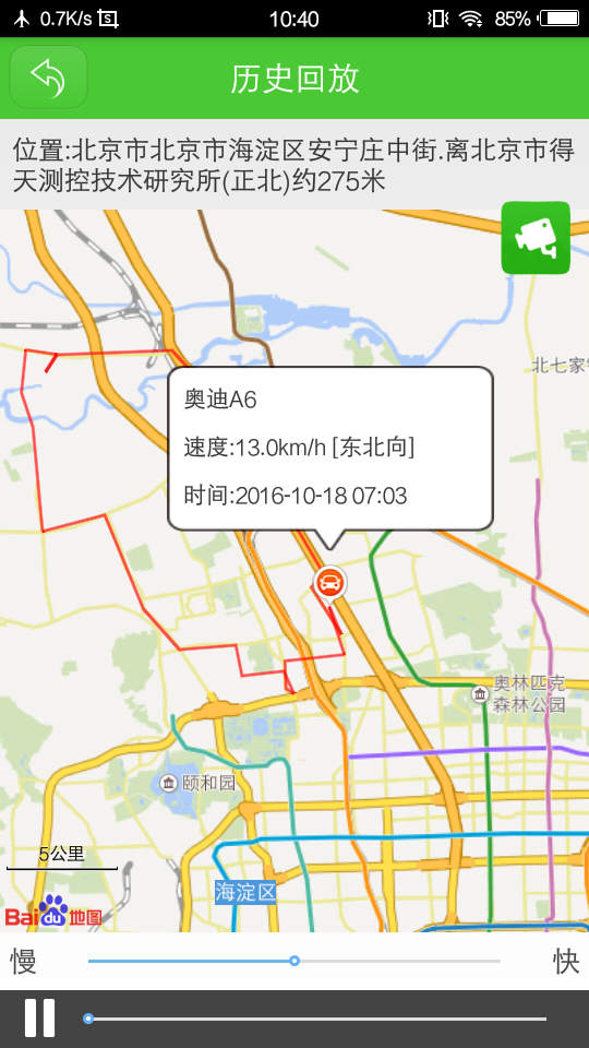 3、轨迹回放:回放指定时段胡车辆行驶轨迹和当时状况。