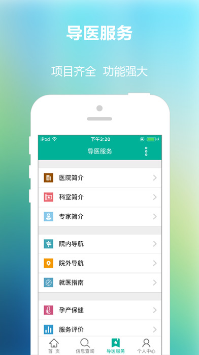 【当天挂号】提供本院全部科室普通门诊和专家门诊的挂号功能,患者可以通过客户端实时挂当天的门诊号,还可以随时随地查看排队叫号信息。【手机支付】支持患者在线支付挂号费、诊疗费、药费、检查费等,减少了患者排队等候时间,大大提高了就医效率。