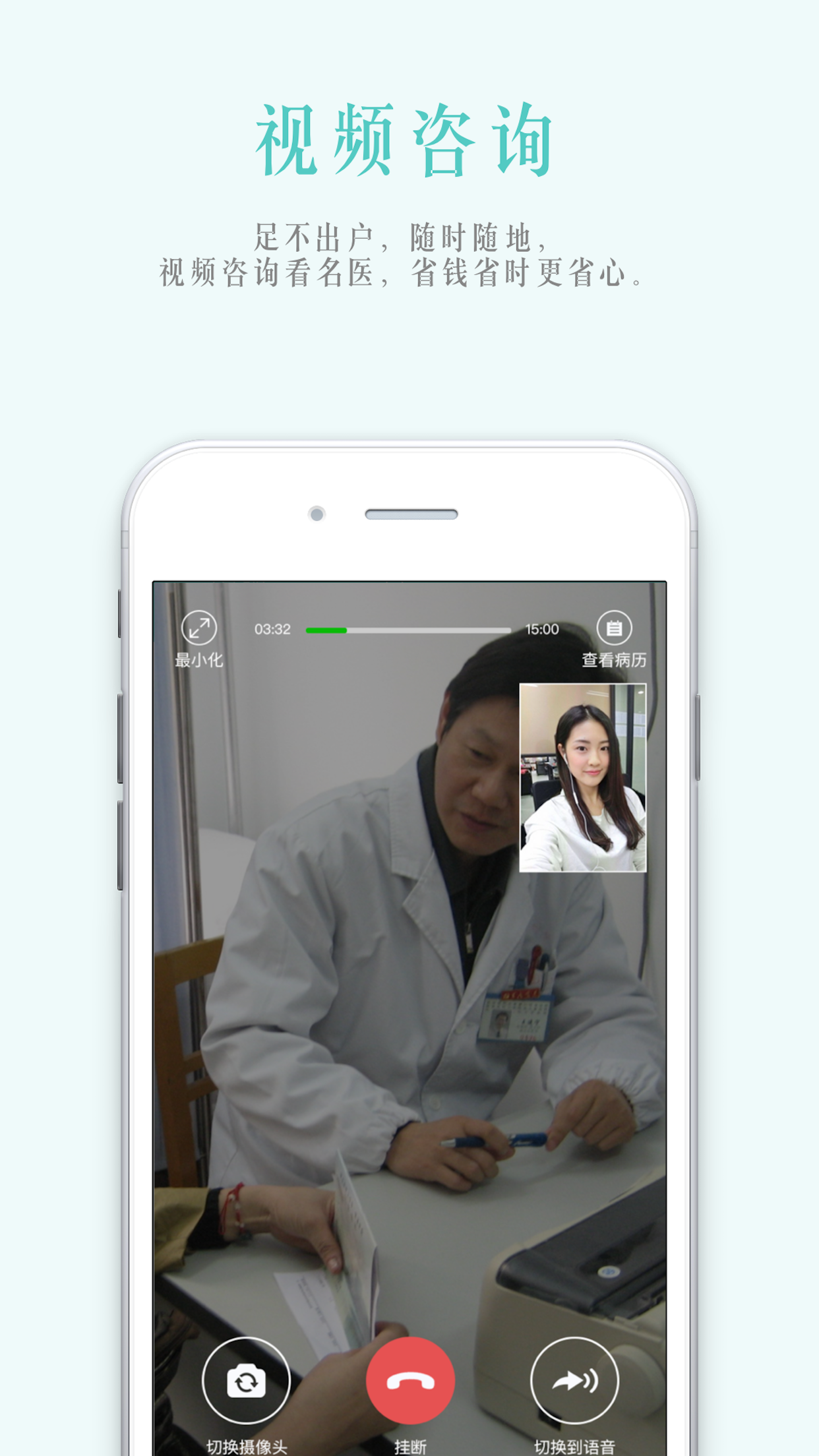 足不出户,随时随地,视频咨询看名医,省钱省时更省心。