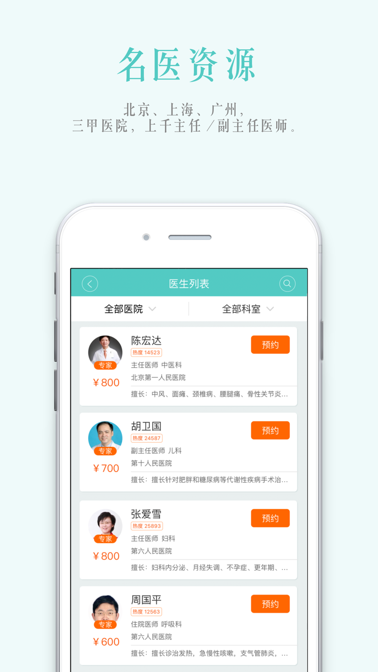 1、名医资源北京、上海、广州,三甲医院,上千主任/副主任医师。