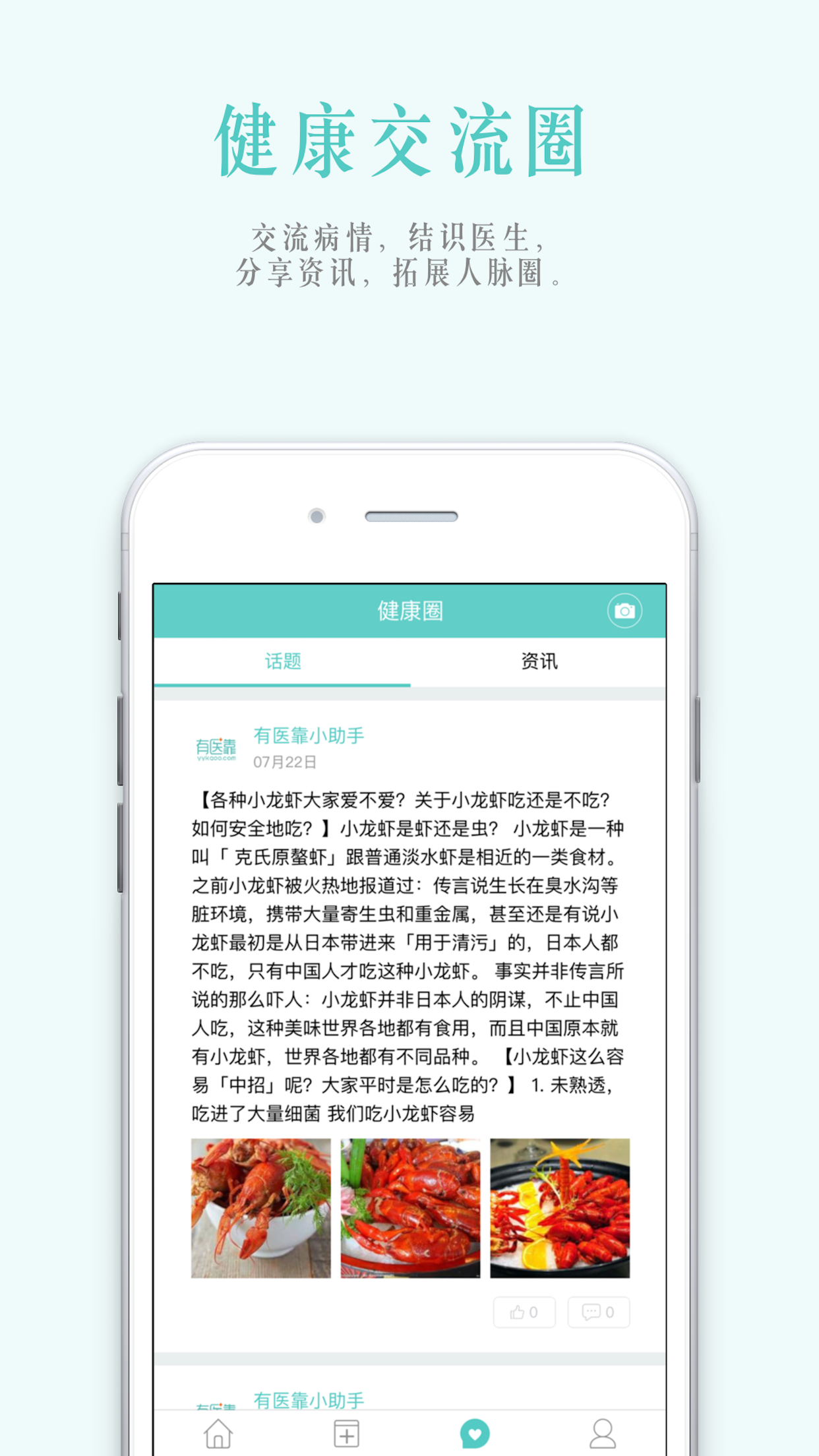 交流病情,结识医生,分享资讯,拓展人脉圈。