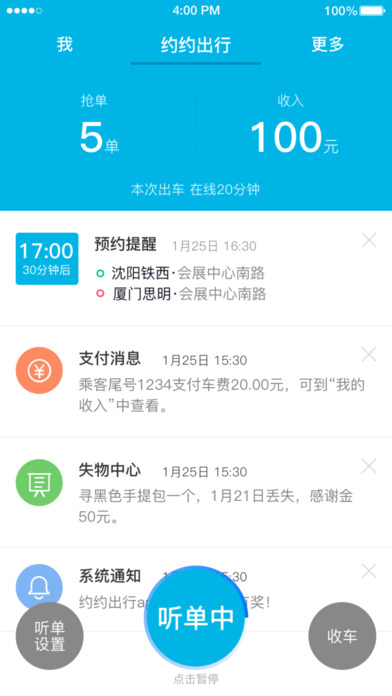 约约出行司机端app是约约出行司机的专属于手机端。约约出行司机端app让司机们可快速抢单,便捷的管理订单信息。