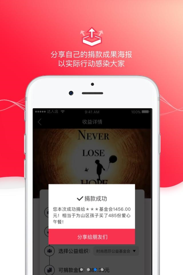 3、分享自己的捐款成果海报,以实际行动感染大家
