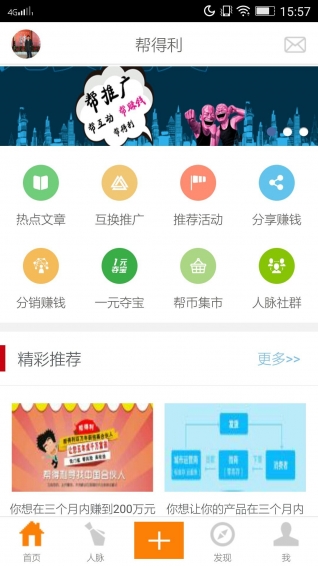 帮赚钱:帮得利帮商家借势营销,利用热点文章,免费插播广告,让用户帮传播,省广告费;不花钱请十万人做营销,省营销团队费...