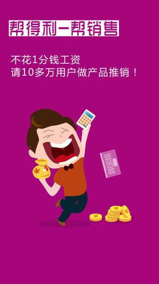 用帮得利,零投资,零风险,代理众多厂家直销产品,轻松分享赚广告费和分销赚销售提成,快邀请好友一起来做分销、赚外快、赚广告费,月入两万不是梦!