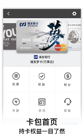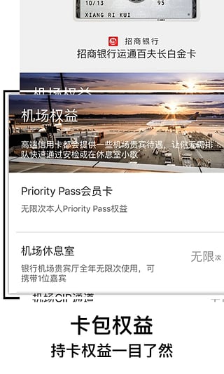 信用卡绑定:通过扫一扫,识别您持所持信用卡种类,一键了解所持信用卡的特色权益、积分规则及优惠信息
