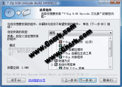 7-zip V9.20 (Unicode x86) 完全汉化安装版 7-Zip是一款号称有着现今最高压缩比的压缩软件,它不仅支持独有的7z文件格式,而且还支持各种其它压缩文件格式,其中包括ZIP, RAR, CAB, GZIP, BZIP2和TAR。此软件压缩的压缩比要比普通ZIP文件高30-50%。因此,它可以把经WinZip压缩的文件再压缩2-10%