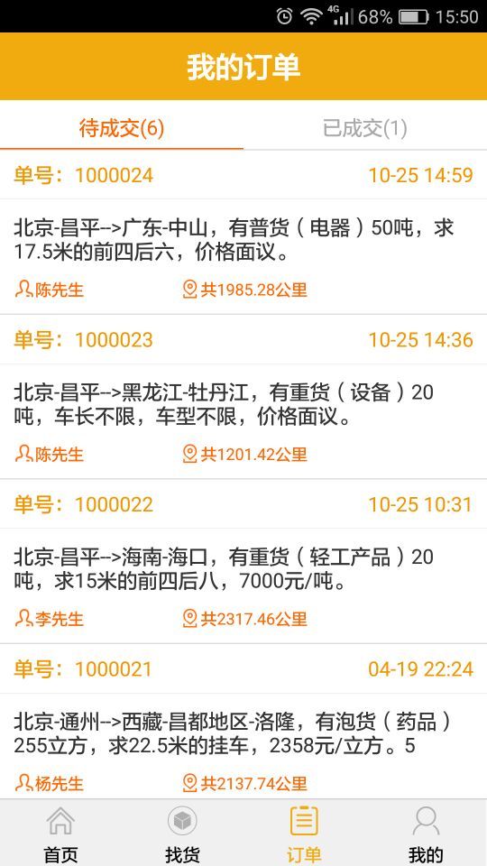 发布司机常跑地的货物运输路线,提高司机运输的成交量。