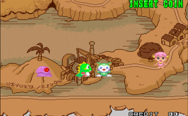 泡泡龙,TAITO在1994年首次发布,是一个十分流行的弹珠游戏。游戏的规则很简单,从下方中央的弹珠发射台射出彩珠,多于3个同色珠相连则会消失。也支持双人游戏,不过此模式下,两个玩家互相竞争:一个消除大片泡泡会转移到对方阵地。