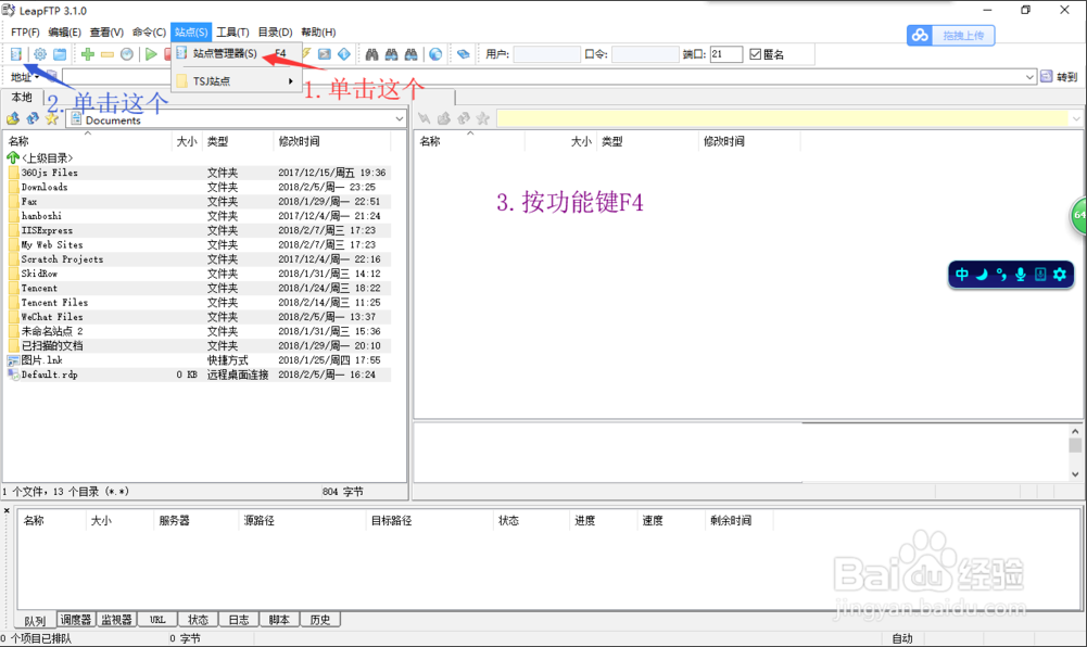 leapftp界面主要功能板块介绍1.管理ftp服务器配置的地方