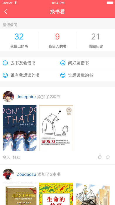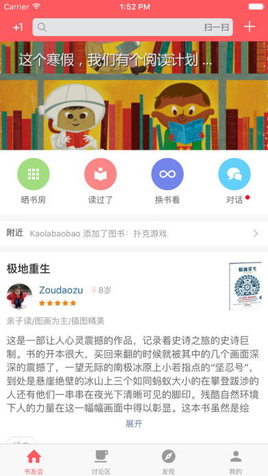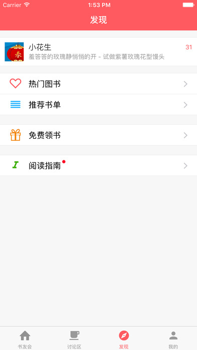 如果你是社区阅读推广人,在小花生你可以组织社区书友会,成员可以在此进行阅读交流和资源借还。