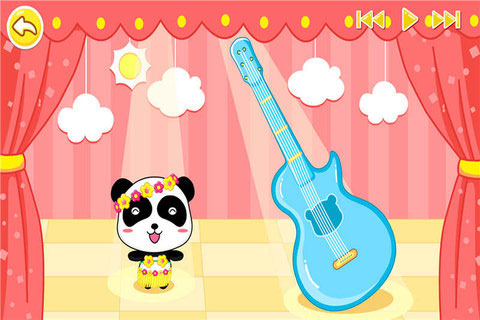 4、吉他:炫丽的舞台上,小熊猫随着音乐翩翩起舞,点击舞台上方的装饰物,让你惊喜连连!