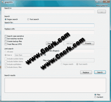 grepWin 是一个 Windows 下的支持正则表达式的文件搜索工具