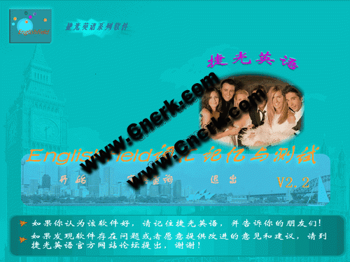 本软件是捷光英语推出的又一款免费软件,作者通过对数千份各类英语考试试题、近千篇英文短文、诗词、演讲、课文、小说中约5000万英语单词进行电脑统计,根据出现的频率将8000个英语单词进行科学分级,分类为小学英语、初中英语、高中英语、大学英语四级、大学英语六级、托福雅思、专业英语七类,充分反映了各个单词的实际使用价值,使用者可以有针对性地进行训练,能有效避免重复学习,节约学习者的宝贵时间。学习者可以用该软件来测试自己的英语水平,同时软件也设定了多种学习方法,可供学习者根据自己的实际情况有选择地进行英语词汇记忆。
