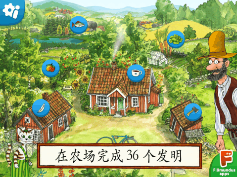 《帕特森的发明3 Inventions 3》在帕特森的发明系列游戏的第三部里,你可以探索帕特森和芬达猫的农场,同时完成他们更加惊人的发明。 畅享36个全新发明,它们分为6大不同的区域,每个区域都有其独特的主题。在柴棚建造摩天轮,在鸡舍制造一个鸡蛋彩绘机,或者把苹果、狗和一点油漆结合起来,创造一个叫人起床的新发明!寻找丢失的自行车零件,看看你是否能完成最后的任务,修好帕特森的自行车!把物品拖放到未完成的发明上,放在正确的位置。按下开始键,看看会发生什么!按照帕特森的指示,帮助他完成所有的发明。 简单的界面与富有挑战性的任务相结合,使得这款游戏对于有兴趣了解物理和激发创造力的儿童和家长都极具吸引力。【游戏特色】