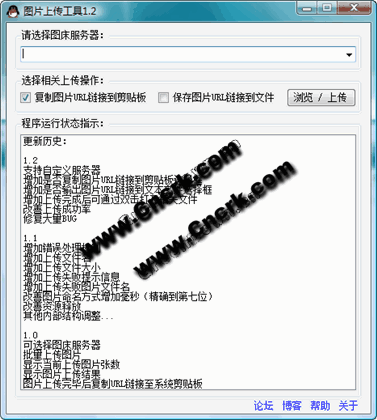 使用方法很简单,选择图床服务器后选择图片文件,然后软件就开始上传,上传完毕后会把图片URL链接复制到系统剪贴板或保存为文本文件