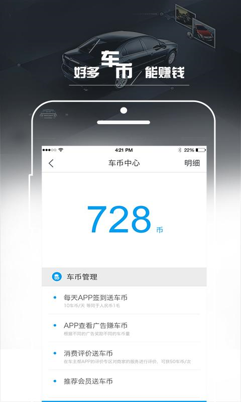 注册送200车币,每日签到送10车币,消费就有等额车币送,推荐会员送车币......多种获取车币方式,用来在线兑换任意产品和服务,还可以操作提现.....赚钱啦!