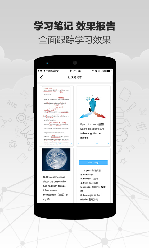 精雕细课独创的交互式学习方式,使你可以在学习过程中答题,查看学习报告,记笔记。学习记录全方位跟踪,学习效果棒棒哒。