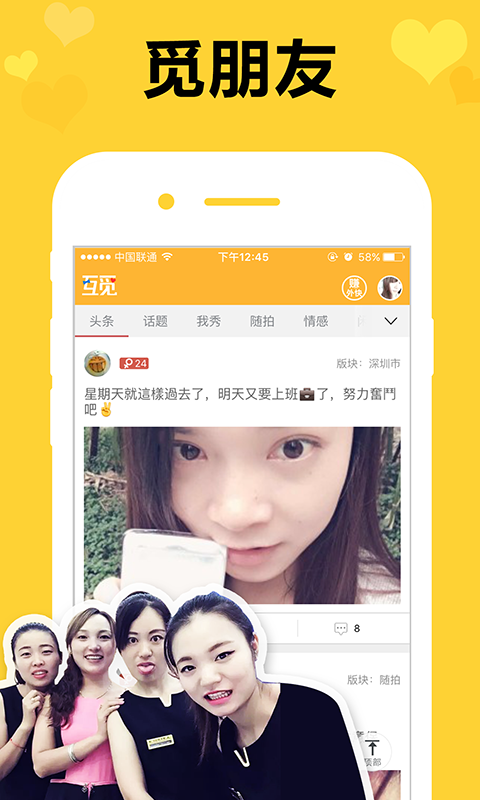 【觅朋友】我们提供同城/我秀/随拍/情感/学校/职校等版块。——跟大家一起互动交流,让你在外工作生活也能感受到家庭般的温暖!