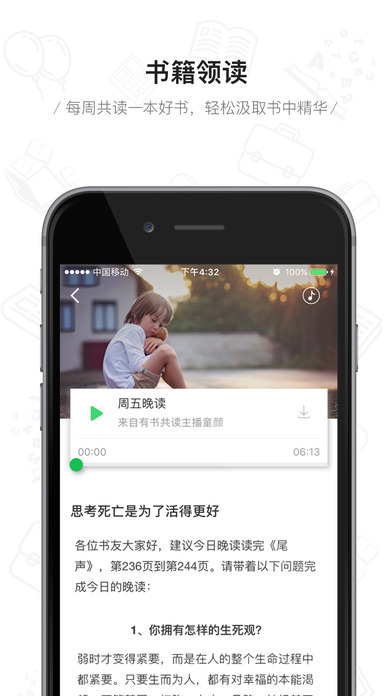 有书共读app是一款有主见的领读手机平台,有书共读app帮助有强烈阅读愿望但又不知道读什么书、不能坚持阅读、阅读效率低下的书友开始高效阅读。【软件特点】