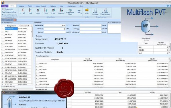 通过KBC Infochem Multiflash v6除了可以模拟气体、液体和固体外,还可以模拟水合物、蜡、沥青质、和聚合物等。