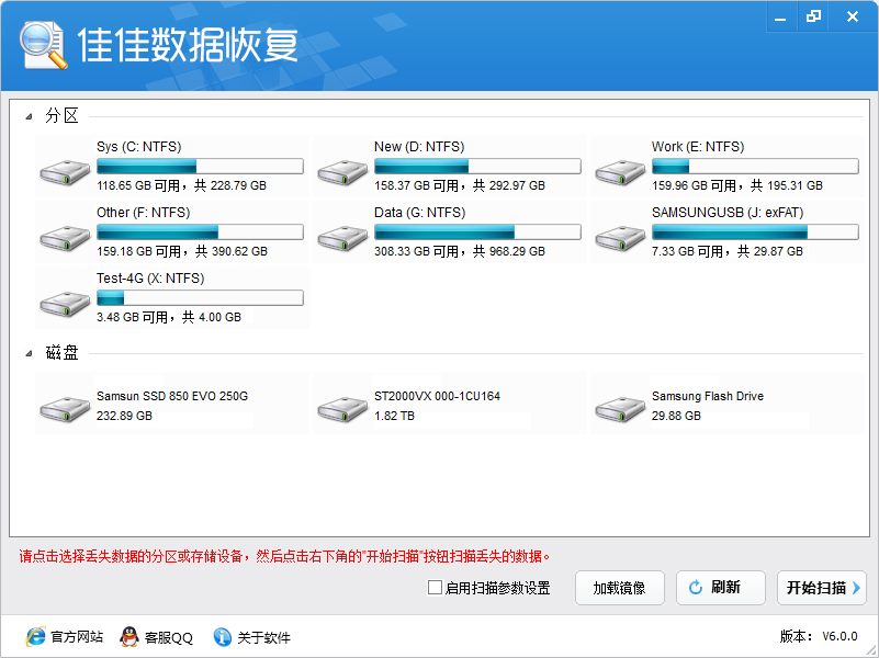 佳佳数据恢复软件,由武汉佳佳易用科技有限公司开发。本软件免费使用,不限恢复文件个数,不限恢复文件大小!可以有效解决各种硬件、软件或人为误操作引起的文件、数据丢失问题!比如:误删除文件、误格式化分区、误分区、文件不能复制、分区打不开、提示RAW等。
