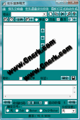 宏乐填表精灵 V2.0.9030 简体中文官方安装版 《宏乐填表精灵》是一个不用修改浏览器的自动填表软件。正在驰骋网络、笑傲江湖的您是否为一些重复而烦琐的注册登记或多如牛毛的信息发布平台而感到不是那么称心如意呢?《宏乐填表精灵》正是为了解决您的这一烦恼而设计。它可保存您的个人信息或商业资料在遇到需要填充这些信息的网站或聊天平台等场合,在鼠标点击的瞬间将资料填入表格或发送到指定文本框。《宏乐填表精灵》是宏乐工作室发布的免费软件,没有任何功能限制。允许用户任意使用与传播。