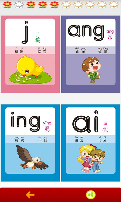 汉语拼音学习app是一款零基础拼音学习软件,精美拼音图片、视频教学(全部本地视频,不需要流量)、拼音描红、拼音笔画演示、拼音考试,是学习拼音字母的好帮手。