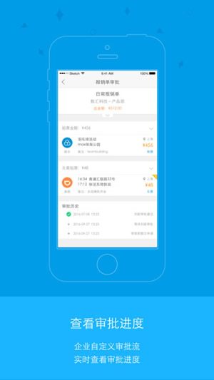 查看审批进度,企业自定义审批流,实时查看审批进度;