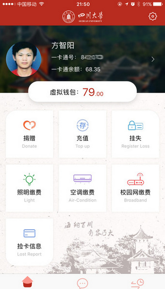 首期以消费金融服务为入口点,提供了校园卡虚拟账户充值、照明缴费、空调缴费、教师校园网缴费、四川大学教育基金会捐赠、校园卡挂失/解挂、捡卡信息等服务,后续会根据广大师生的需求增加功能。