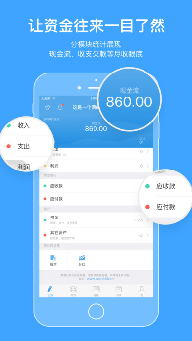 -成本利润:通过科学的财务体系,报表展现收支利润,现金流量情况
