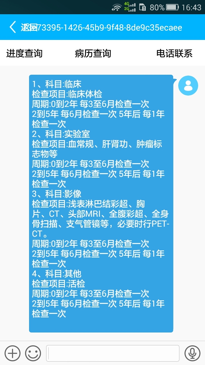3,个性化管理:用户可个性化编辑并保存各种治疗方案、随访方案,将自己的临床经验记录并保存下来,在需要使用时可立刻调出使用;同时可分享给治疗组其它成员。
