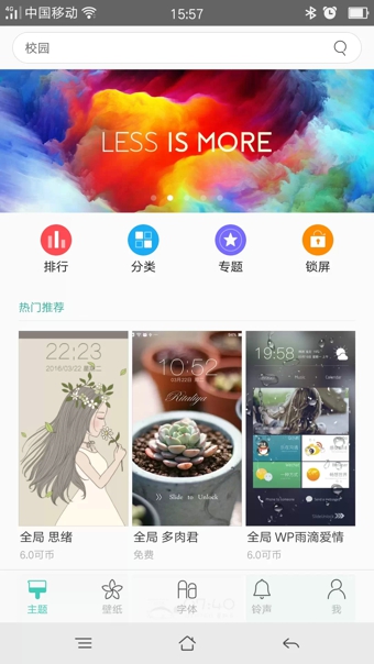 【海量资源,每日更新】主题商店汇集主题、壁纸、字体、锁屏、铃声海量资源,且每日不间断更新。【官方福利】每周末提供官方福利,精品资源免费放送,更有不定期多种官方福利供应。