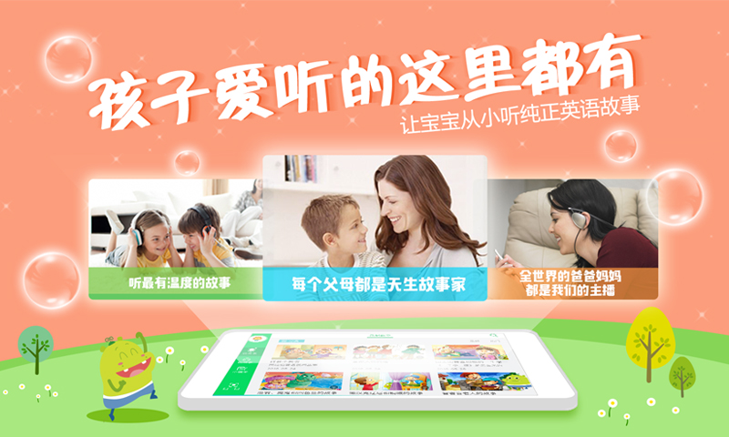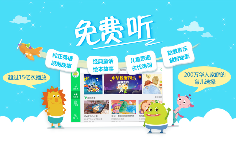 3、不一样的海量音频故事:全世界的爸爸妈妈都是我们的主播,因为更有温度所以不一样;您可以与全世界的小朋友们一起分享你讲的故事、英语故事、儿歌、动画片等等。